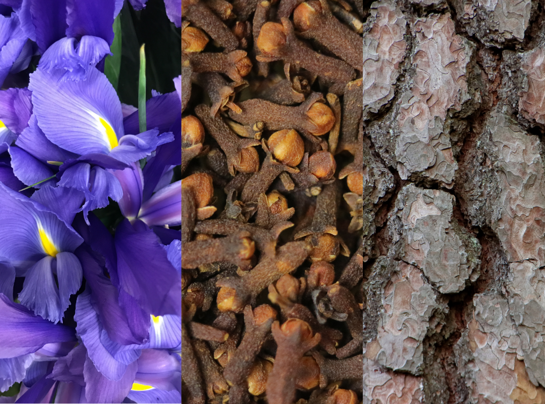 Iris, kruidnagel, Cederhout. Diepe, aardse
